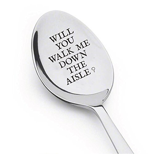 - This High quality stainles spoon engraved as ' Will You Walk Me Down the Aisle? ' using industrial standard engraving machine,so the impression will remain forever even after billion washes.