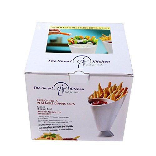 Dip and dine on veggies, fries and finger foods of all kinds. Top rack dishwasher safe. Each cup is 7-inches tall and holds about 8 ounces of fries, veggies or pretzel sticks. Dipping cup easily slides out for cleaning and prep.. This is a brand new product.☯ Perfect for parties, watching TV or just an anytime snack - Makes Dipping Fun! Comes in an attractive case of 4 ready for gift giving. Designed and made by The Smart Kitchen - tools for Cooks.
