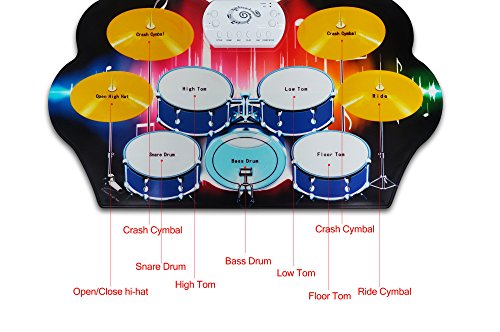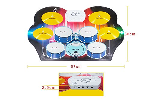 This roll up drum set is made by silicone,it's foldable and portable, easy to play anytime anywhere, should be an necessary equipment to make the atmosphere of home or outdoor party became very high