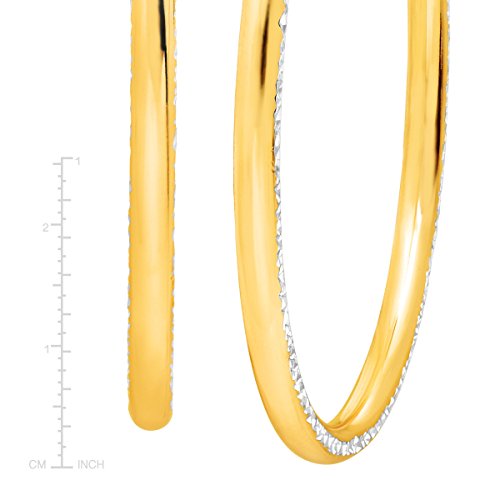 DIAMOND-CUT HOOP EARRINGS: These large hoop earrings are set in 14K gold-bonded sterling silver, and detailed with a diamond-cut effect to beautifully reflect the light
