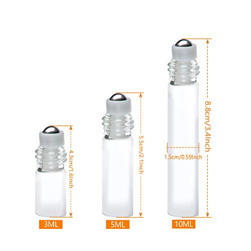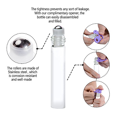 YsesoAi Frosted Glass Roller Bottles for Essential Oils 3ml 5ml 10ml , Metal Roller Balls Essential Oils Opener Key Tool included (White)