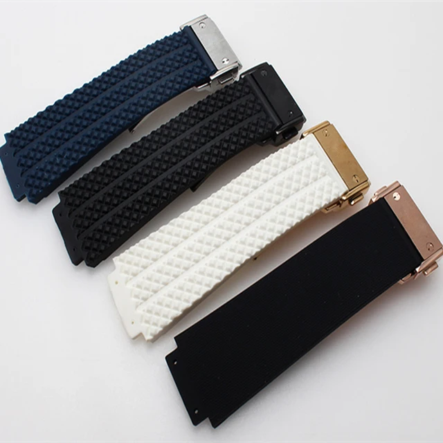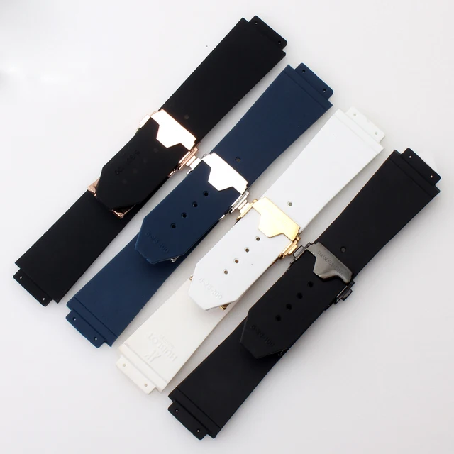 | [해외]25*19 미리메터 실리콘 고무 시계 스트랩 벨트 손목 HUBLO 큰 벵 T 로고 시계 시계 배포 걸쇠 더블 푸시 버클 |