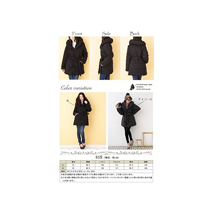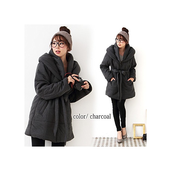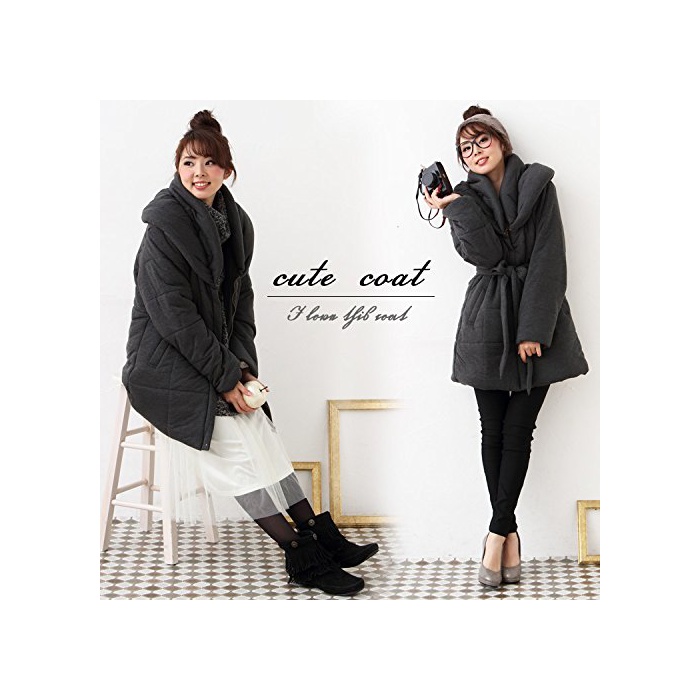 (Goldjapan)골드 재팬 큰 사이즈 레이디스 벨트 부착 중면-안솜 코트 다운 코트 다운 재킷 A라인 코트 점퍼 재킷 귀엽 넉넉하게 체형 커버 캐주얼 sada-8013