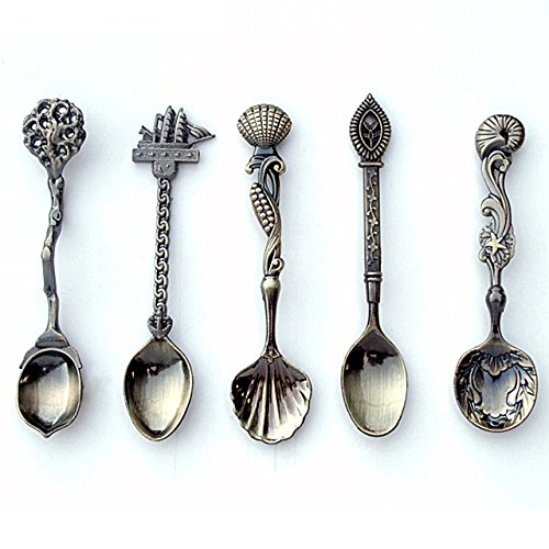 Coffee Dessert Spoon Set 5 Pack Lackingone Retro Creative Bronze Spoons 4 inches Unique for Gift