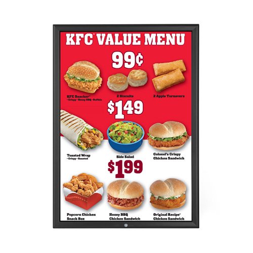Display your posters using one of our Locking Snap Frames! A fast and easy solution to your sign and display requirements where security is key. Suitable for public areas such as restaurants, community centers and movie theaters and the like. This frame is made to the highest industry standards, the best quality available at the lowest price. It is made of Aluminum. It features a Super White Styrene Backing that offers some water resistance and gives the graphics 'pop'. Strong, yet lightweight and easy to use. The front snaps open on spring hinges to change posters- no tools and removal from wall required. Flexible PVC lens offers non-glare and UV protection. Comes with the key, all the necessary hardware & concealed mounting holes. This frame can be hung both vertically and horizontally. This is the industry standard- we supply the world's leading brands- Disney, NASA, Walgreens, ABC, etc. Buy with confidence from industry's best: SnapFramesDirect.Feature