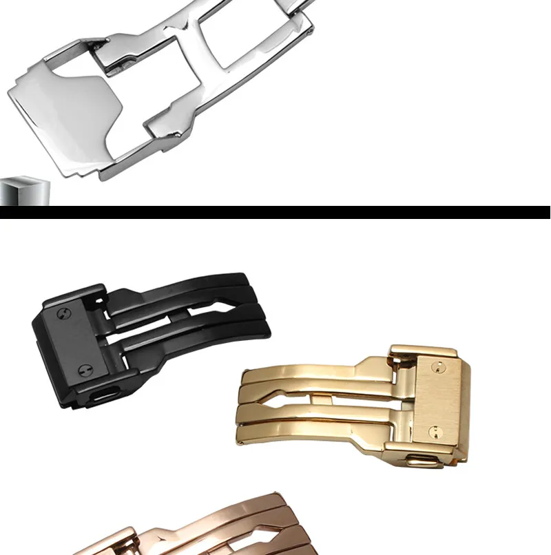 18 미리메터 20 미리메터 22 미리메터 24 미리메터 새로운 품질 실버 블랙 골드 로즈 골드 butterfly 배포 시계 밴드 더블 푸시 버튼 버클 버클