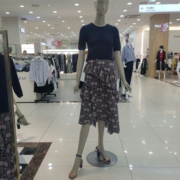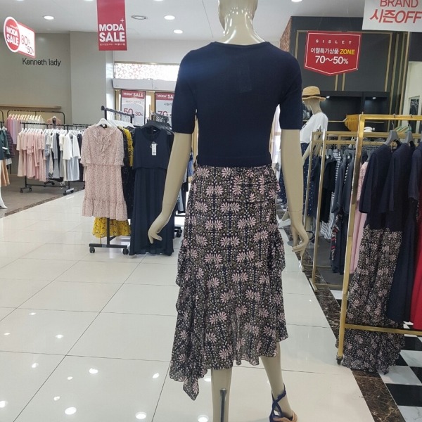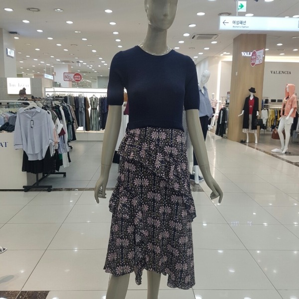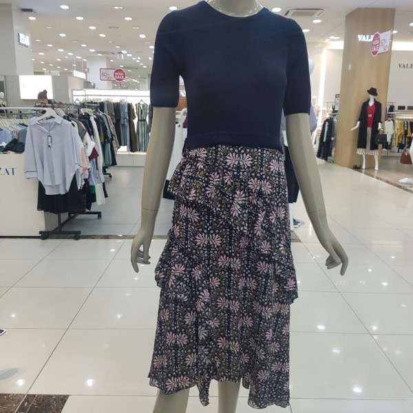 화사한 꽂프린트에 언벌런스 기장감이 멋스럽고 프릴 캉캉이가 세련된 느낌을 주는 니트 원피스입니다.