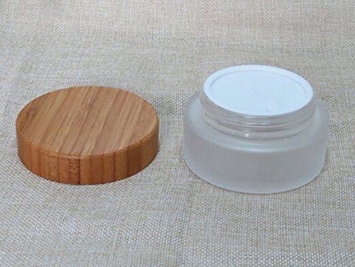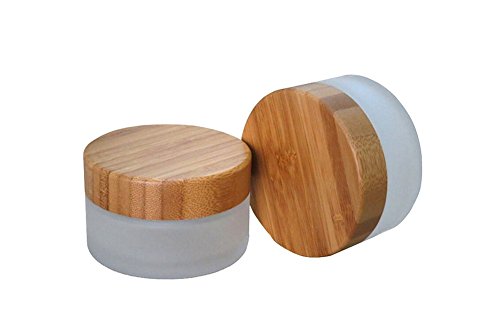 TOPWEL 30ML(1 OZ) Frosted Glass with Bamboo Lid Empty Refillable Cosmetic Cream Jar Pot Bottle Container (2pcs)