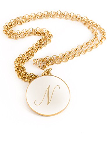 -. Feature : Vergoldete Halskette und Medaillon mit Initiale, Emaille, Weiß / Handgemacht in Florenz, original Cecchi, Umfang: 5 cm / Vergoldet
