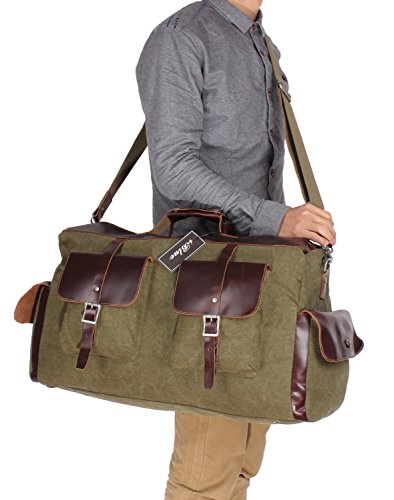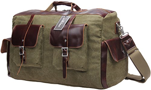 -. Brand : iblue -. Color : Green -. Department : unisex-adult -. Feature : ✔Warranty- The Canvas Overnight Bag Have 3-Year Warranty. / ✔Material-Heavy Duty Canvas With Imported Genuine Thick Leather Trim,Unique Solid Silver Hard Rivet. / ✔Plenty Roomy For 3-5 Days Travel- The Iblue Leather Travel Duffel Bag Is The Perfect Bag For Weekend Get Away. / ✔Dimension- 21in L X 8in W X 12in H, It's Built Tough Enough To Survive Baggage Handlers And Cargo Holds, But It's Also The Right Size To Work As A Carry On. / ✔ Capacity- This Duffle Bag Has Lots Of Storage Capacity Both Inside The Main Compartment As Well As In Pockets On The Front And Sides Of The Bag. -. PackageQuantity : 1 -. ProductGroup : Apparel -. ProductTypeName : LAGE -. Title : Iblue Genuine Leather Overnight Weekender Garment Shoulder HandBag Canvas Travel Sports Duffel#10191