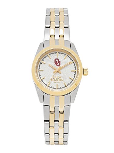 Studio : Jack Mason Publisher : Jack Mason Binding : Misc. Product Description Our slim Oklahoma Sooners two-tone women's watch is a sleek and sophisticated original design. The richly textured dial is accented with the OU logo placed at the 12 hour and luminescent hour and minute hands. This stylish 26mm timepiece features a high polished stainless steel case, bracelet, and buckle clasp and is made with a screw-down case back and etched crown. 0