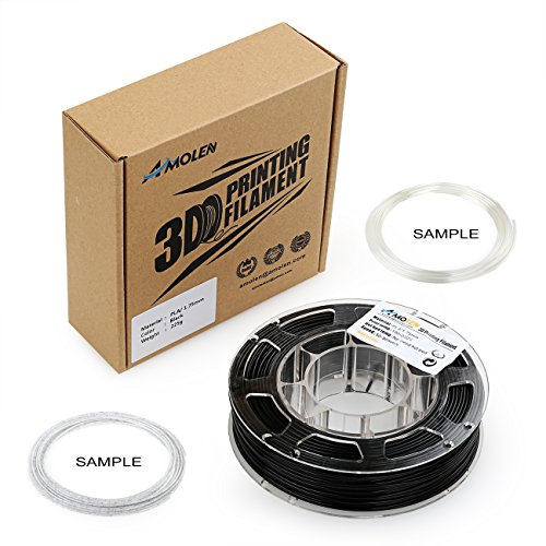 AMOLEN 3D Printer Filament, Black 1.75mm PLA Filament +/- 0.03 mm, 0.5LBS Spool, includes Sample Silk&Marble Filament