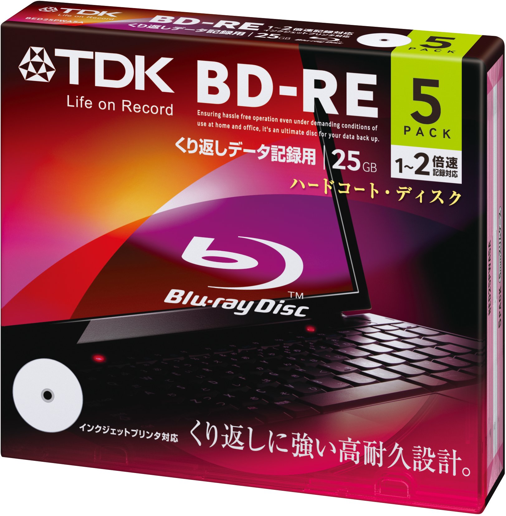 TDK Blu-Ray BD-RE Rewritable Ver. 2.1 25GB 2x Speed - 5 Pack Slim Case