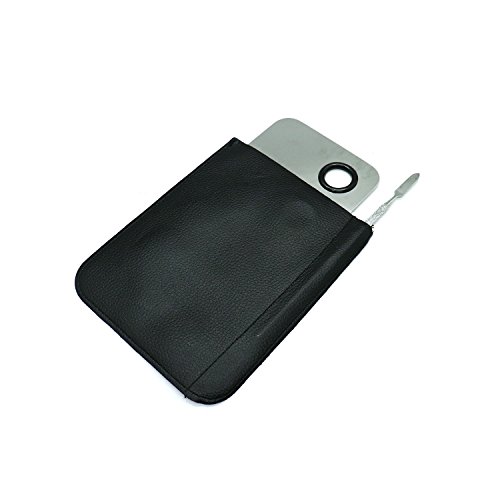 HUELE Pro Stainless Steel Cosmetic Mixing Plate With Makeup Blending Spatula Tool With Genuine Leather Case