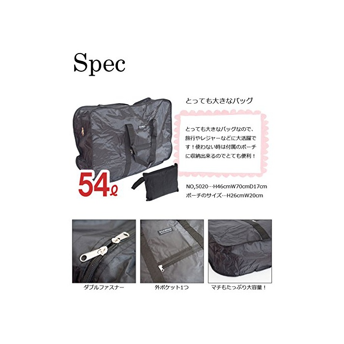 원본상품명: ビッグボストンバッグ 54L 超特大 コンパクト納ポチ付き 5020