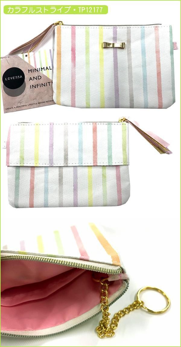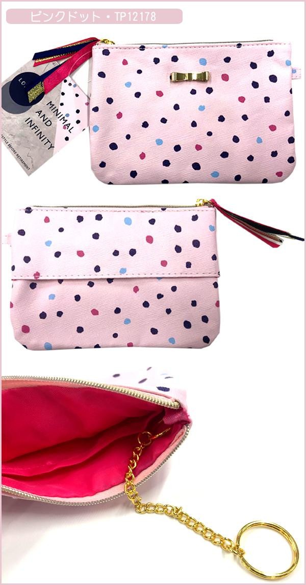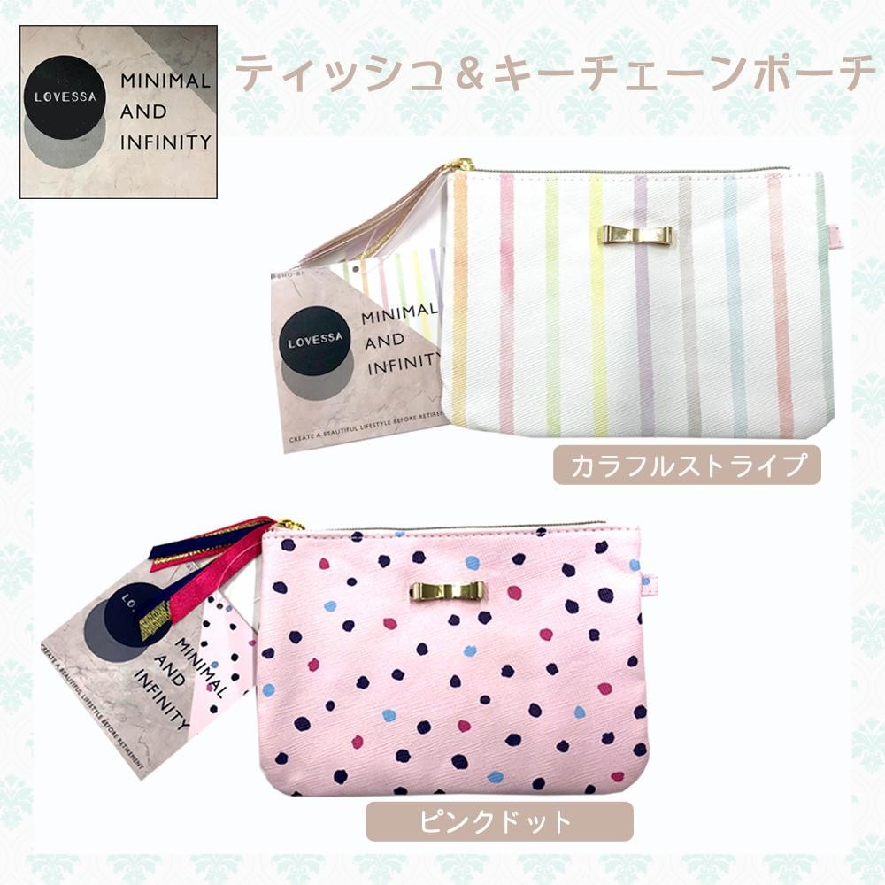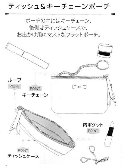 ポーチの中にはキーチェーン 後側にはティッシュケースがあり お出かけ時に便利なポーチです
