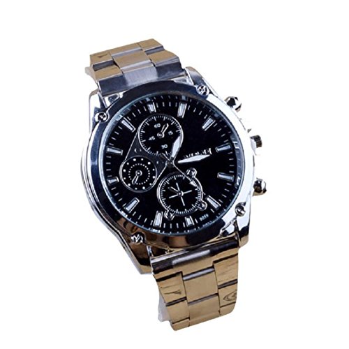 -. Title : Hemlock Round Sport 3 Eyes Watches Stainless Steel Band Watches Silver