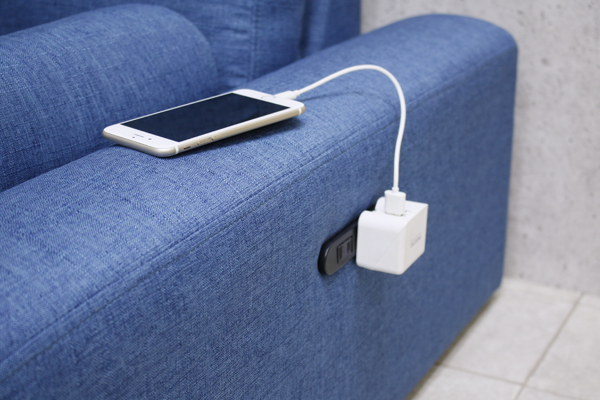 ●肘の側面には携帯電話の充電等に便利な2口コンセント付。 1500W対応、コード長150cm