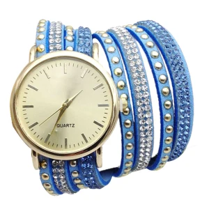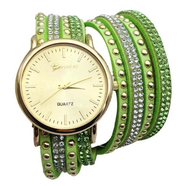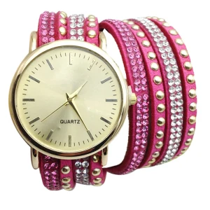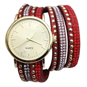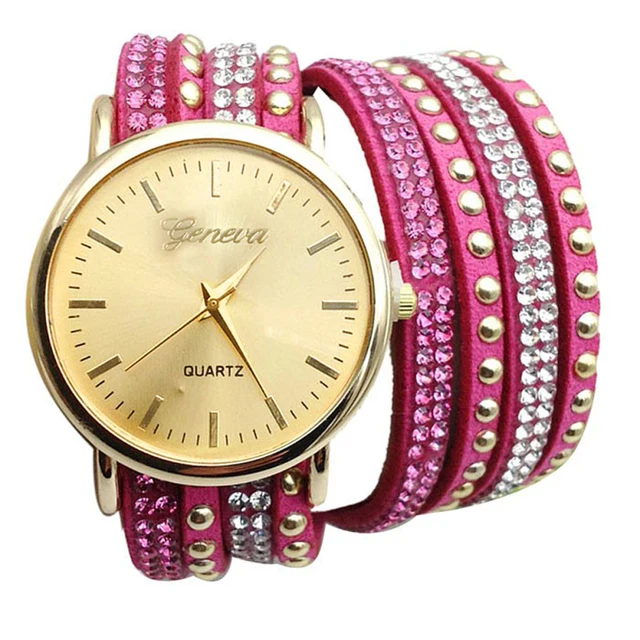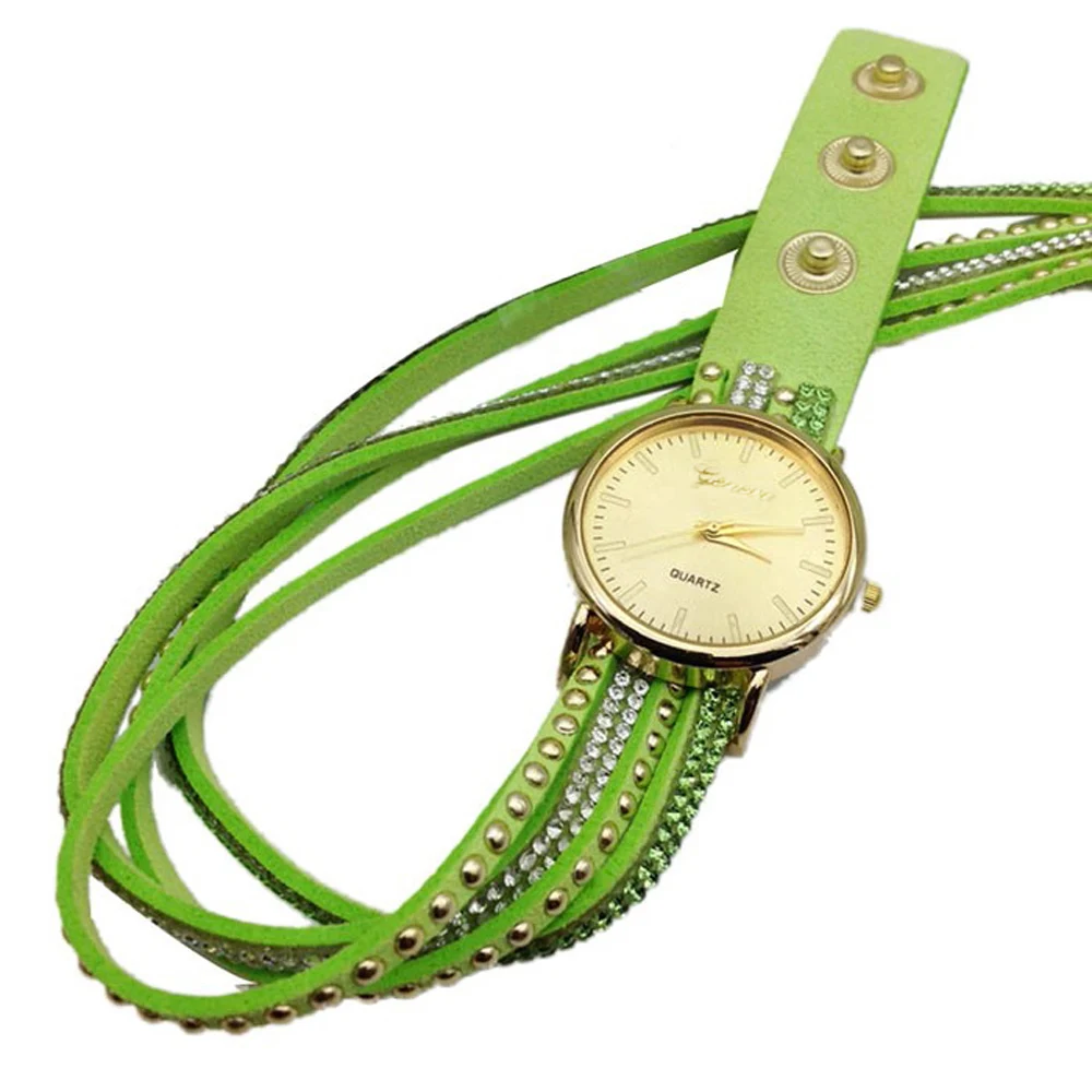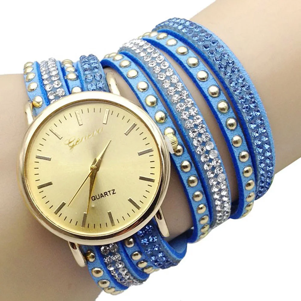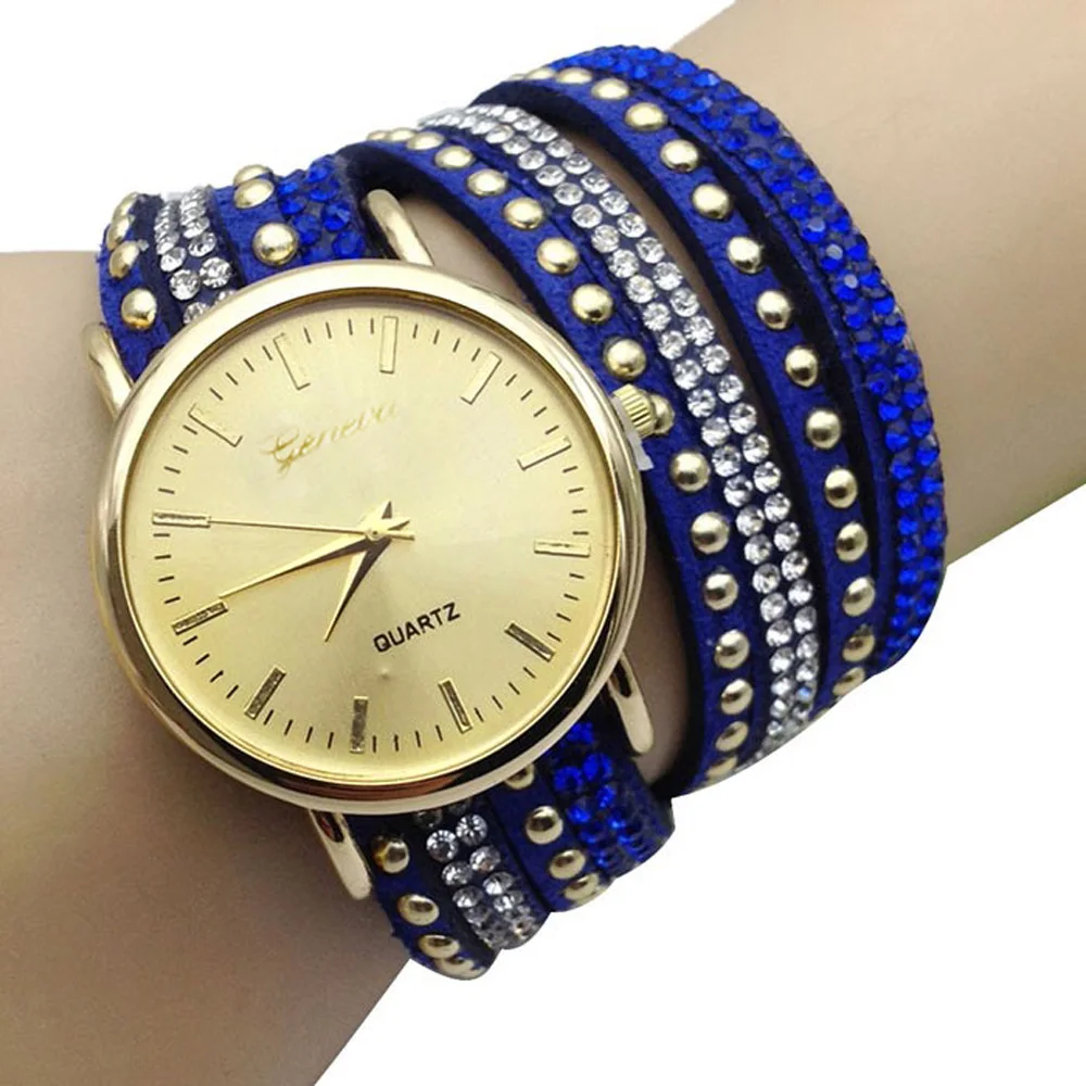 | [해외] 우수한 품질 9 새로운 캐주얼 여성 시계 PU 가죽 한국어 크리스탈 리벳 팔찌 시계 여자 여성 시계 마르 14 |