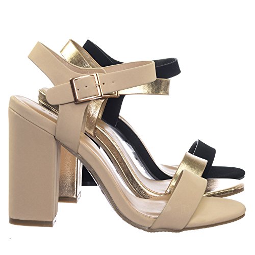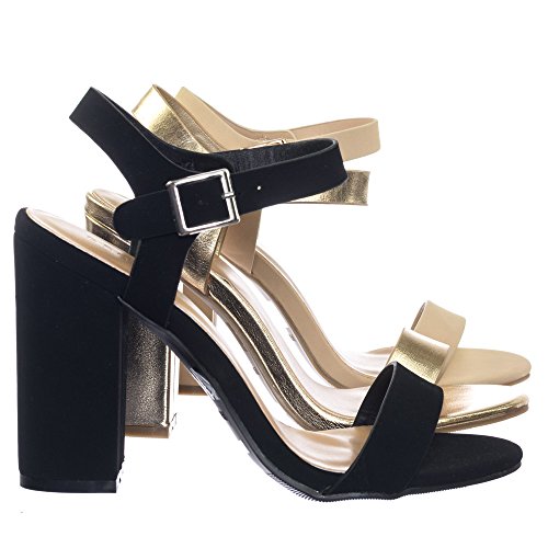Binding : Apparel Product Description About This Shoes :These sandal features a single foot band, adjust ankle strap, open toe construction, wrapped chunky block heel and lightly padded insole. Brand - Bamboo Colors Available: Black, Gold, Nude Occasion: Formal Shoe Type: Ankle Strap Shoe Style: Ankle Strap Inner Lining: synthetic Heel Height In Inches - 4 Heel Style - Block Toe Style - open-toe Platform Height In Inches - .25" Shaft Height In Inches - Circumference Opening - Strap Type - ankle-strap Sole - manmade All Man Made Material unless otherwise stated. Computer/Phone/Table monitors might show color differently because of its quality or calibration, we suggest you look at the photo in at least 3 monitors if you need exact color match of your shoes. 0