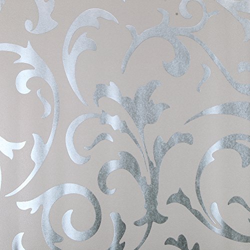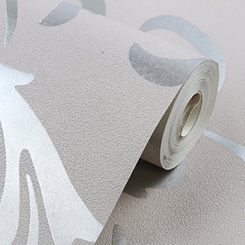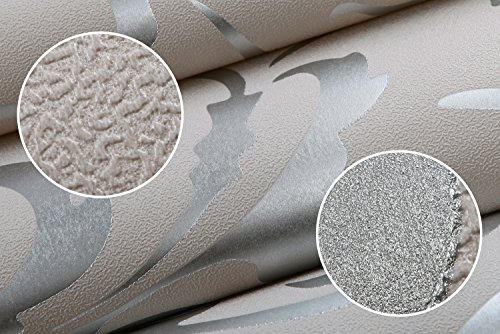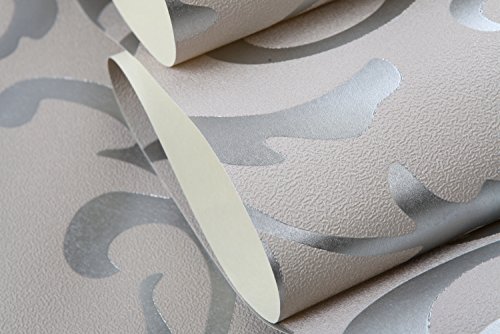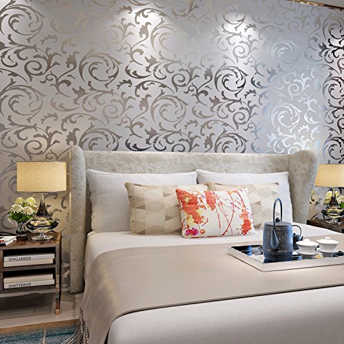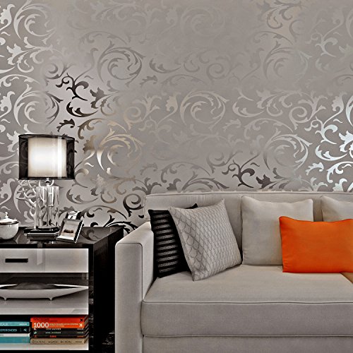 HANMERO Victorian Damask Embossed Textured Pattern Vinyl Wallpaper Environmental Protection Long Murals Rolls for Living Room/Bedroom/TV Background Home Decor- Silver Gray 20.86'' x 393.7''