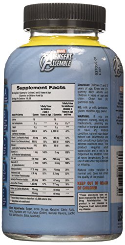 Your kids will feel like they can save the world when they take MultiVitamin Gummies in fun Avengers shapes! These delicious gummies contain over 10 vitamins and minerals, including Vitamin A for eye health, B Vitamins for energy metabolism and Vitamins C & D for immune function.* MultiVitamin Gummies are a fantastic way to give children a great start to their day!
