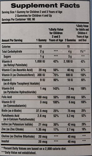 These gummies contain vitamin A for eye health, B vitamins for energy metabolism, vitamin C for immune function, and vitamin D to support bone, teeth, and immune system health