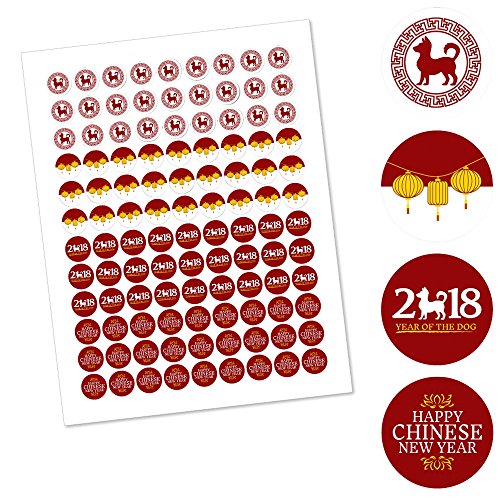 Chinese New Year - 2018 Year of the Dog Party Round Candy Sticker Favors - Labels Fit Hershey’s Kisses (1 sheet of 108)