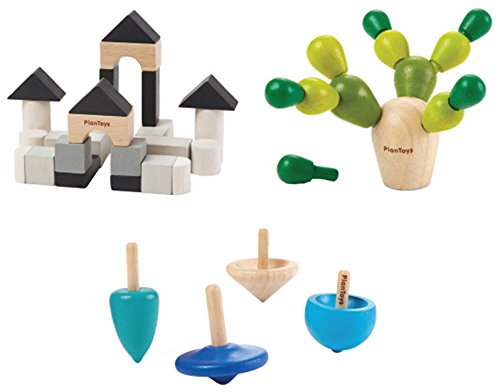 Studio : Plan Toys Publisher : Plan Toys Binding : Toy Product Description PlanMini Series Set encourages children multiple ways of learning and discovery. The Spinning Tops set consists of 4 different tops and colors. Good for developing fine motor skills and bring fun time to you and your friends. The Construction set allows for creating buildings. It consists of 24 blocks with 8 different shapes. The Balancing Cactus is a strategic game for 1-2 players. Build and balance the cactus without making it fall. 0