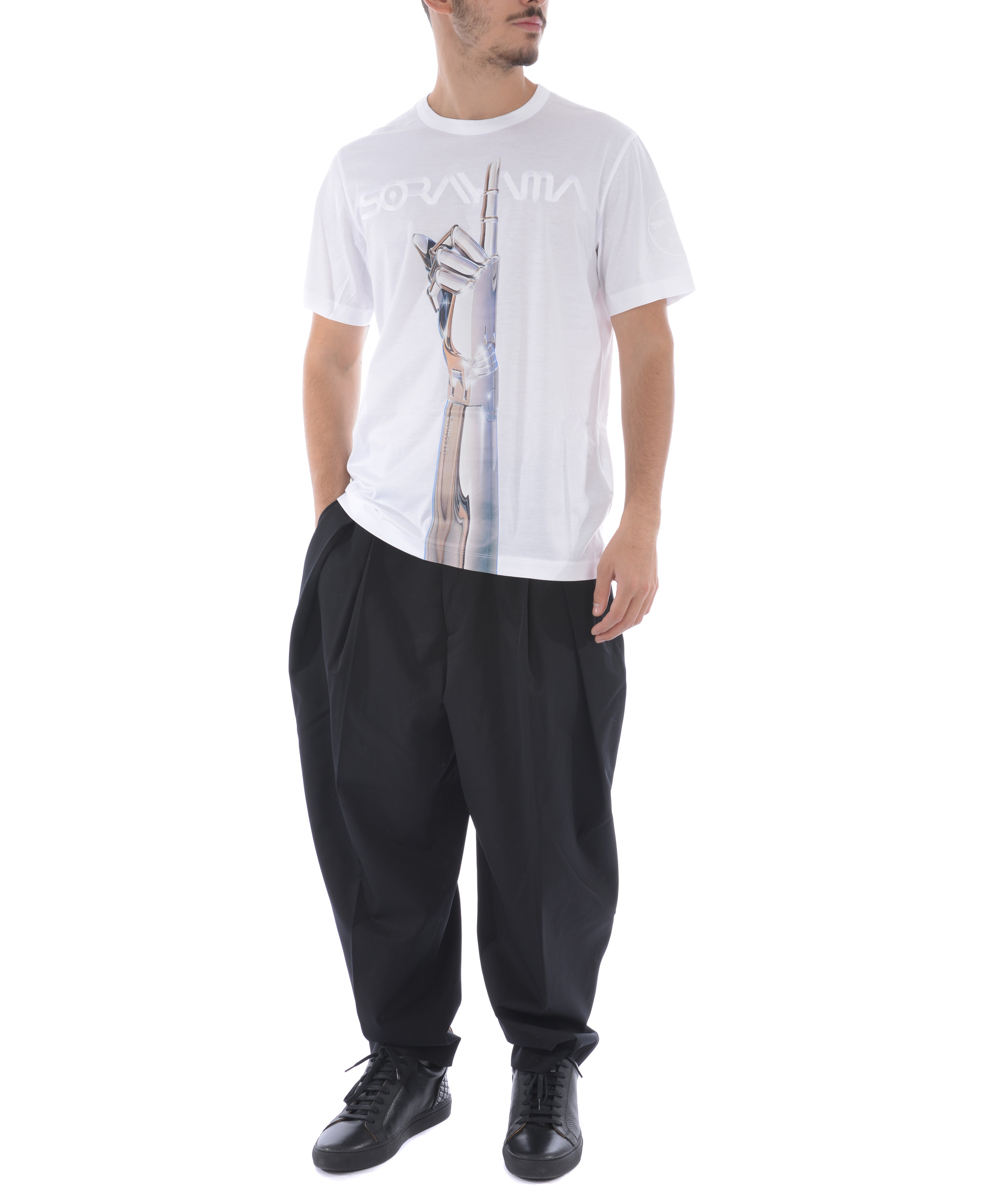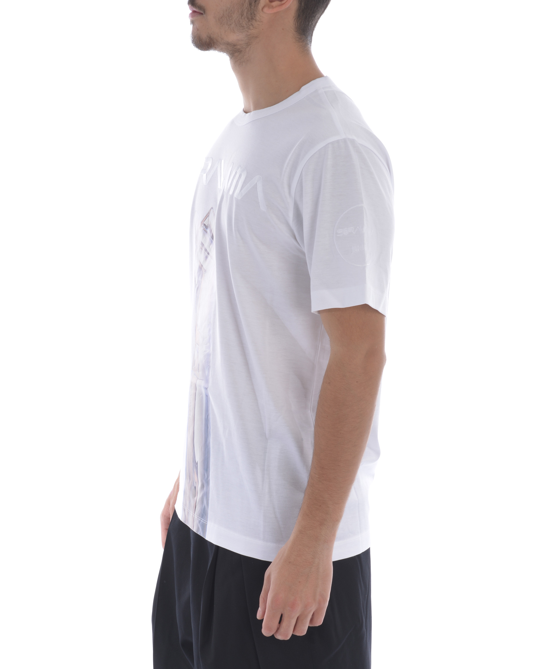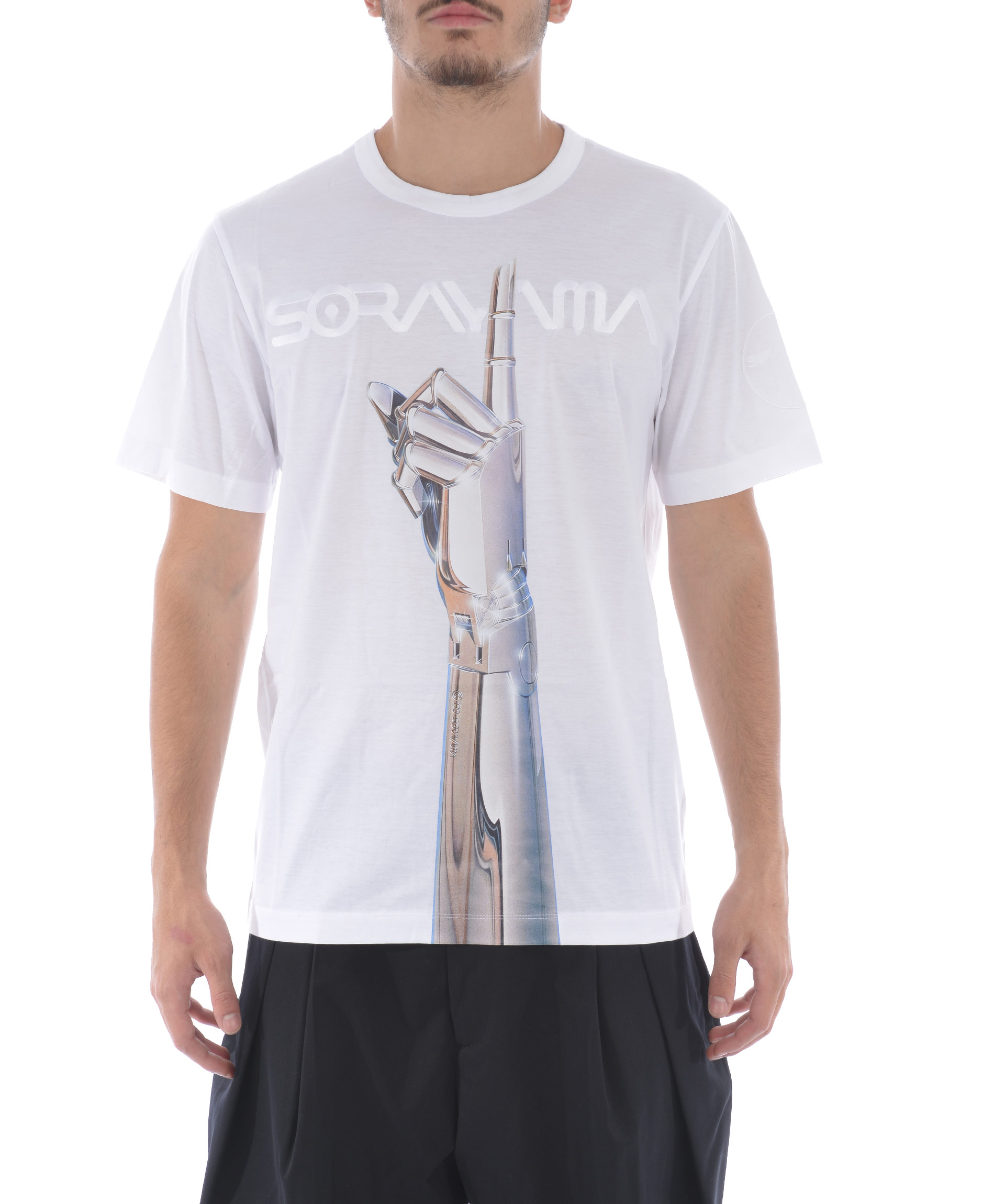 T-shirt Juun.J in cotone Bianco. Logo ricamato e stampa Sorayama sul davanti. Girocollo. Manica corta. Misura in foto 46 100% cotone