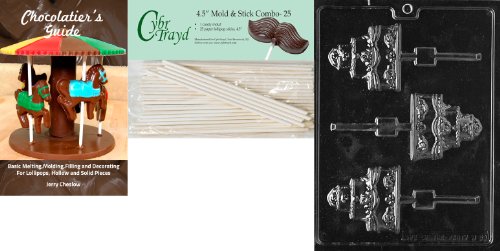 Cybrtrayd 'Wedding Cake Lolly' Wedding Chocolate Candy Mold with 25 4.5-Inch Lollipop Sticks and Chocolatier's Guide