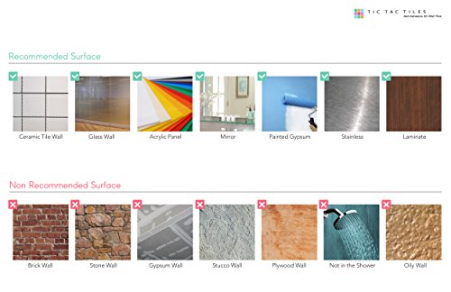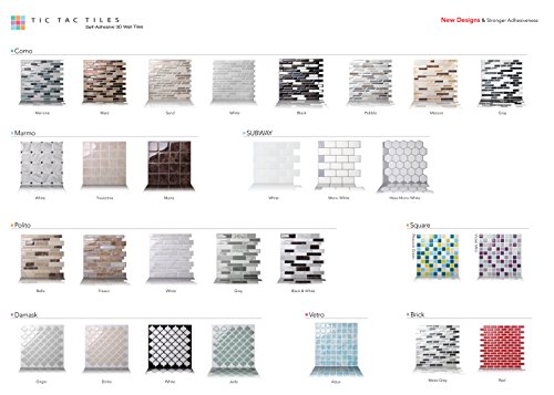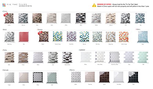 Studio : Tic Tac Tiles Publisher : Tic Tac Tiles Binding : Kitchen Product Description The premium quality self adhesive wall tile that is easy to install. Just peel and stick! The DIY peel and stick tile concept of Tic Tac Tiles is made possible through Tic Tac TechnologyTM that makes the product very easy to cut, stick and maintain. Tic Tac Tiles can be installed in minutes without any specialized tools over any sleek and clean surface. Tic Tac Tiles can be used to renovate kitchens (for example, back splashes) and bathrooms. Tic Tac Tiles are resistant to the humidity of bathrooms and the heat of ranges once it is installed. It can be removed by simply heating the surface with a hairdryer and peeling it off. Our high quality tiles make your renovation a lot easier! 0