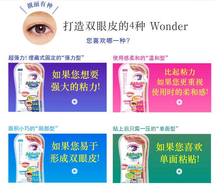 dup分为四种,有些拿不准主意的亲,可以买一片我店内成盒拆开的散装试用装回去试试看自己到底适合哪一种。散装试用链接:https://item.taobao.com/item.htm?spm=686.1000925.0.0.dW1XWi&id=532168298835