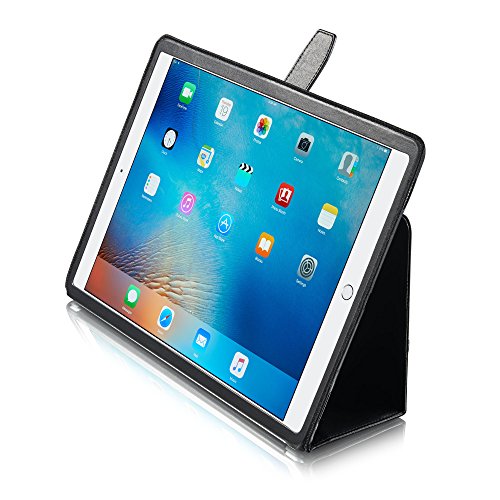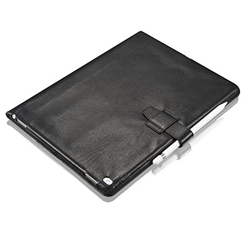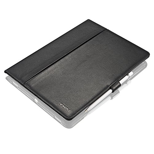 This genuine leather case "London" in black by KAVAJ for the Apple iPad Pro is the ideal companion for your daily business life. Its sleek looks and high-quality are an obvious sign of good taste - both during business meetings and in your spare time. With its sleek design and its practical features like two positioning angles, a tab closure for safe transport, a separate compartment for documents our iPad case "London" makes a stylish impression in every situation.