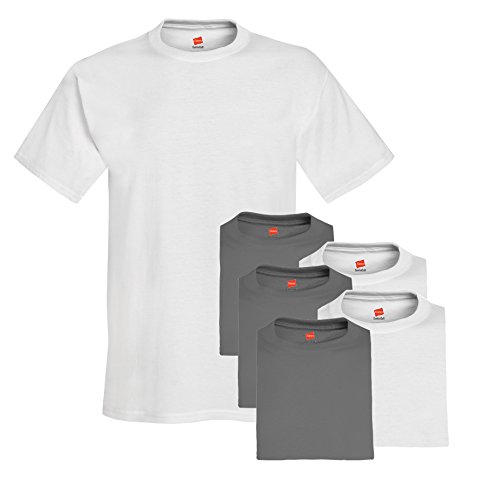 Hanes Men's 6-Pack Crew T-Shirt, 3 Smoke Gray / 3 White, X-Large