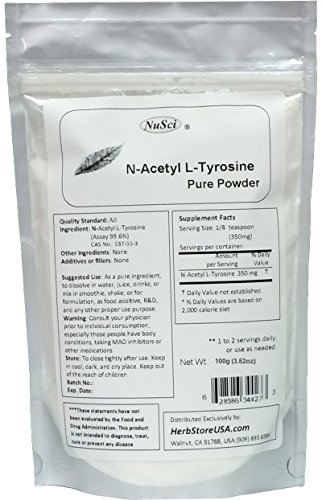 -. Title : NuSci N-Acetyl L-Tyrosine 100g (3.52 oz) Pure Powder, AJI Quality, Better Bioavailability, Energy Ingredient.