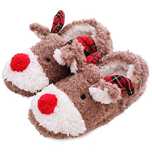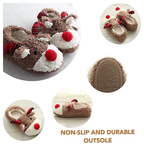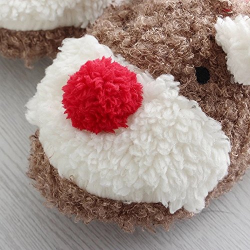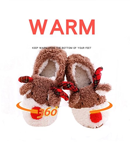 WHY CHOOSE POPGLORY SLIPPERS? ★Very soft and warm: Thick memory foam makes these animal slippers very soft and warm even in cold winter. ★High-quality Material: The TPR rubber sole is not easy to deform and environmental protection, without peculiar smell. It also does no harm to any floor surfaces and would not make any noise. ★Beautiful and cute deer shape: An wonderful gift for anyone