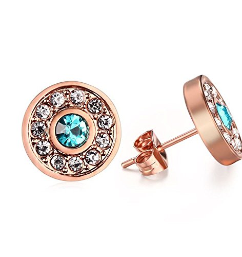 -. Title : ラウンド Czダイヤモンド ビジュー ピアス ブルートパーズ クリスタル ピンクゴールド ステンレス ジュエリー レディース Pink Gold 両耳