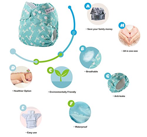 All in one size - Three rows of adjustable snaps to allow for a small/medium/large size in one cloth diaper, fit newborn infants to toddlers.