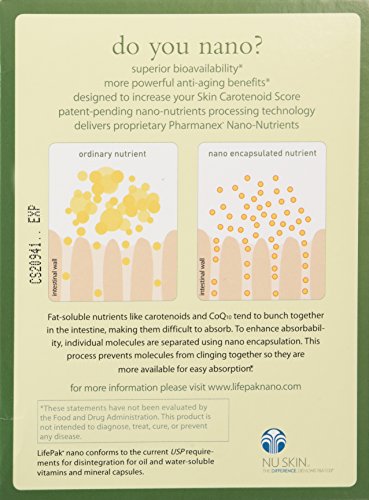 -. Binding : Health and Beauty -. Brand : Nu Skin -. EAN : 6930604700010 -. Feature : A proprietary innovation in anti-aging protection with advanced bioavailability and maximum benefits. LifePak Nano is designed to be the most scientifically advanced anti-aging supplement for adults.* -. IsAdultProduct : 0 -. Label : NUSKIN -. LegalDisclaimer : Must be at least 18 & over to purchase Consult list of ingredients before taking -. Manufacturer : NUSKIN -. Model : LifePak Nano -. MPN : LifePak Nano -. NumberOfItems : 1 -. PackageQuantity : 1 -. PartNumber : LifePak Nano -. ProductGroup : Health and Beauty -. ProductTypeName : HEALTH_PERSONAL_CARE -. Publisher : NUSKIN -. SKU : 8V-IXDH-HY8M -. Studio : NUSKIN -. Title : Pharmanex LifePak Nano anti-aging dietary supplement - 60 packets A proprietary innovation in anti-aging protection with advanced bioavailability and maximum benefits. LifePak Nano is designed to be the most scientifically advanced anti-aging supplement for adults.*