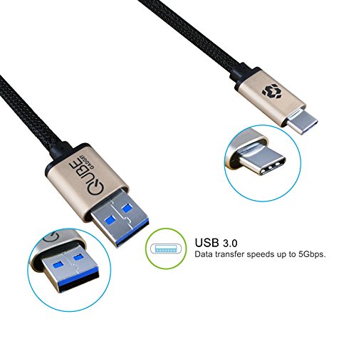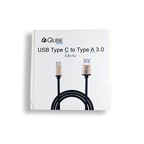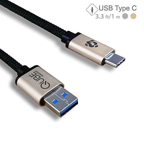 USB Type C to USB Type A 3.0 Cable by Qube Gadget- in aluminum casing & fiber-braided - 3.3FT/1M (Gold)