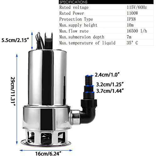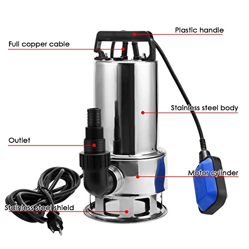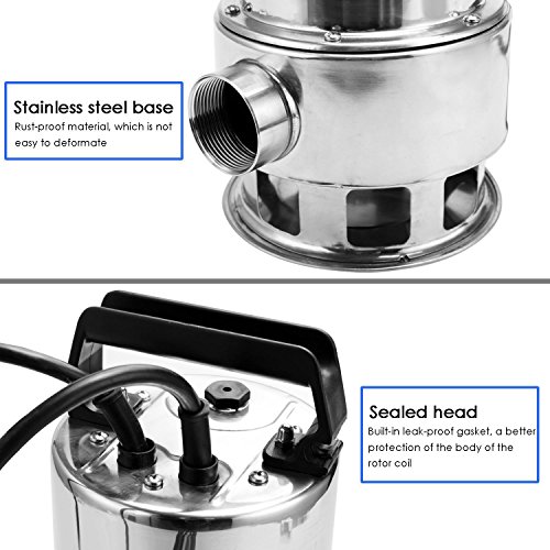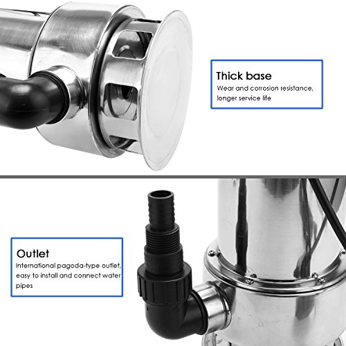 - Material: Stainless Steel sump pump, rustproof and expanded product life, easy to clean, wipe and storage