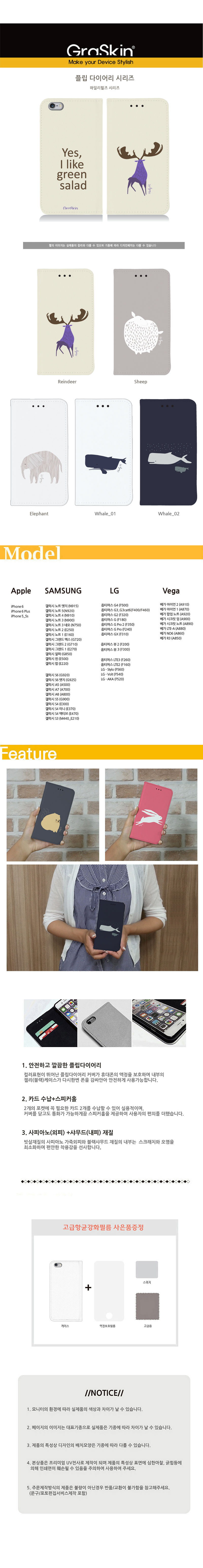 상품명 : [다이어리케이스]Volt 하일리힐즈/사슴&고래 (+액정보호필름)