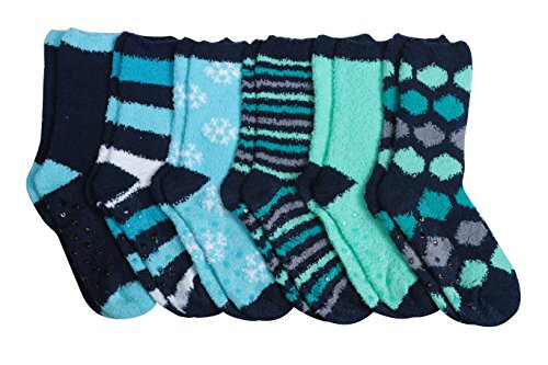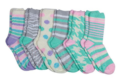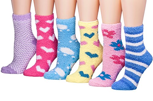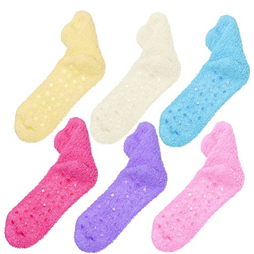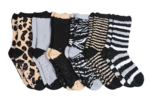 -. Binding : Apparel -. Brand : Tipi Toe -. Department : womens -. Feature : Fits shoe size 6-9 (sock size 9-11). 98% Polyester 2% Spandex / Anti-skid grippers on bottom, never slip again! Great for your everyday active lifestyle / Features cozy, soft & stretchy microfiber plush material in fun assorted colors / Socks are a little shorter than crew length socks / 6 or 12 pairs Value Pack, Colors and Patterns exactly as shown in the image -. ProductGroup : Apparel -. ProductTypeName : SOCKSHOSIERY -. Title : Tipi Toe Women's Patterned & Solid Anti-Skid Soft Fuzzy Crew Socks, 6 Or 12 Pairs