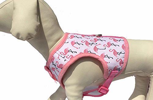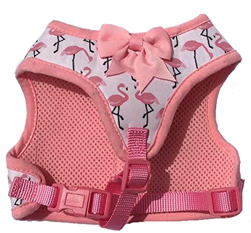 Pink Flamingo Soft Dog Harness With Bow Tie