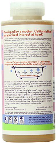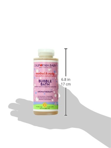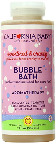 California baby overtired and cranky aromatherapy bubble bath was specially blended to de-frazzle! Divert a tantrum, wind down from a stressful day, or make this natural bubble bath a part of your morning routine. Frolic safely in this chemical-free bubble bath with the added benefit of aromatherapy. This special bubbling formula contains mild vegetable-derived bubbling agents, enriched with a nourishing herbal complex that works to protect delicate skin. California Baby non-drying biodegradable gentle bubble bath strictly avoids the use of synthetic fragrances and harsh bubbling agents.Feature
