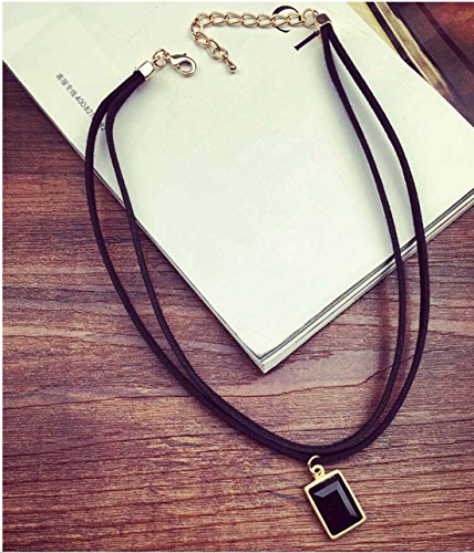 -. Title : LPVLUX - ダブルベルベットレザースクエアダイヤモンドの宝石の襟黒の女性の短いパラグラフ鎖骨セーターチェーンネックレスジュエリー女性のネックバンド