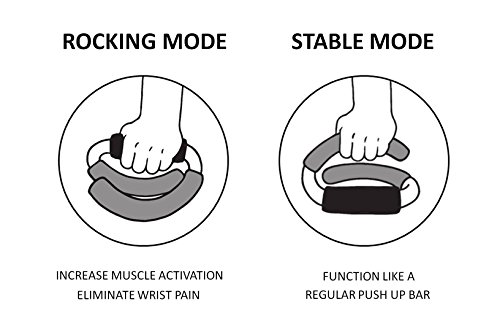 - Feature : Push-up Bars + Stability Trainer / Promote more muscle growth. Eliminate wrist pain / Build stronger arms, bigger chest, broader shoulder and ribbed core / Rocking & Stable mode offers perfect pushup form for your body type / Built to last construction