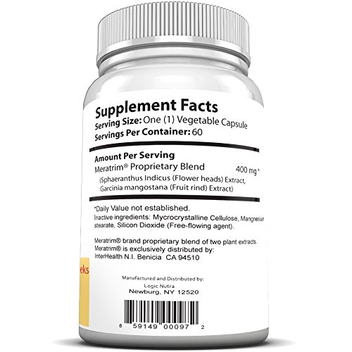 -. Binding : Health and Beauty -. Brand : Logic Nutra -. EAN : 0859149000972 -. Feature : Meratrim is Made with a proprietary blend of fruit rind and flower extracts. / Does not contain stimulants. / Lacks any chemical additives or artificial flavors. / Gluten free, soy free, and sugar free. / Complementary to a diet and exercise regimen aimed at weight reduction. -. IsAdultProduct : 0 -. Label : The Logic Nutra Company -. Manufacturer : The Logic Nutra Company -. MPN : Meratrim 60 -. PackageQuantity : 60 -. PartNumber : Meratrim 60 -. ProductGroup : Health and Beauty -. ProductTypeName : HEALTH_PERSONAL_CARE -. Publisher : The Logic Nutra Company -. Studio : The Logic Nutra Company -. Title : Meratrim 400 mg 60 Vegetarian Capsules Pure Weight Loss Slimming Formula 400mg Daily, FREE SHIPPING,Patent Pending Formula Clinically Proven to Lose Weight Starting in 2 Weeks, Stimulant Free - 60 Count - Manufactured in a USA Based GMP Organic Certified Facility- Guaranteed to work or your money back! Take advanatage of this offer now! -. UPC : 859149000972