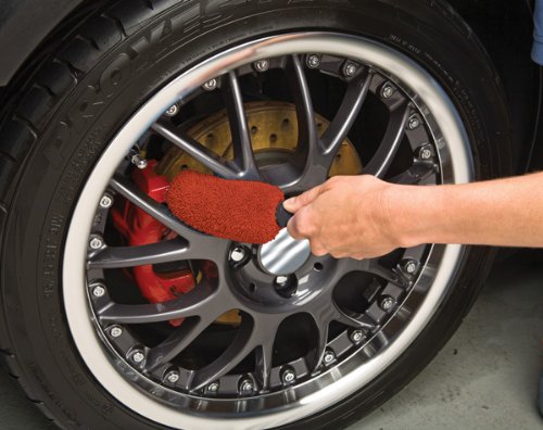The hottest and fastest growing trend in automotive detailing today is the use of microfiber towels, and as good in automotive appearance accessories, Viking is leading the way into the future of detailing. There is no true detailer without his/her assortment of Viking microfiber. The performance and versatility of cutting edge microfiber technology is a leap beyond the old towels and drying cloths of the past. Millions of tiny fibers embedded in a microfiber cloth grab and hold dust and dirt like no product that has come before it. Microfiber is so effective, it even cleans without chemicals, saving both time and money. Viking is the first brand to combine this powerful new technology with the old brake dust brush concept to revolutionize the way wheels and rims are cleaned today. A traditional brake dust brush mimics an old toilet brush. It's PVC bristles don't clean well and it has a wire rim that could easily scratch your wheels. The Viking premium metal free wheel and rim wand solves both of these problems. A soft foam core shrouds a long plastic finger, completely eliminating the possibility of scratching your wheels. Covering that foam is a heavy-duty microfiber bonnet that lifts brake dust away quickly, effectively, and most importantly safely.